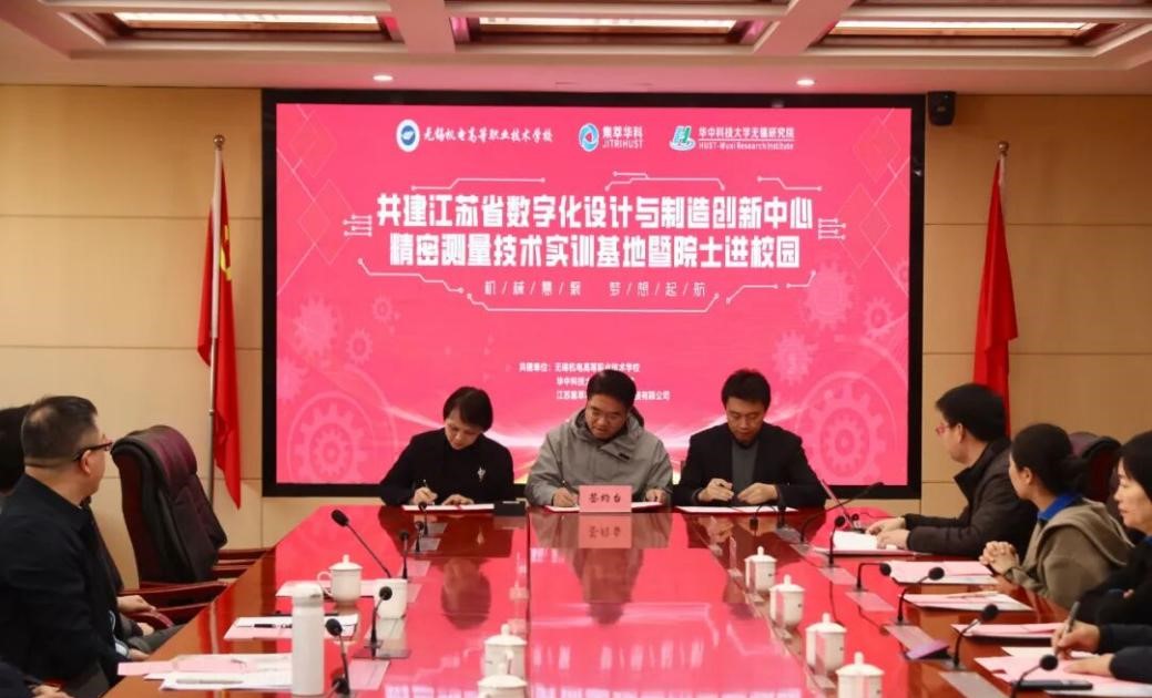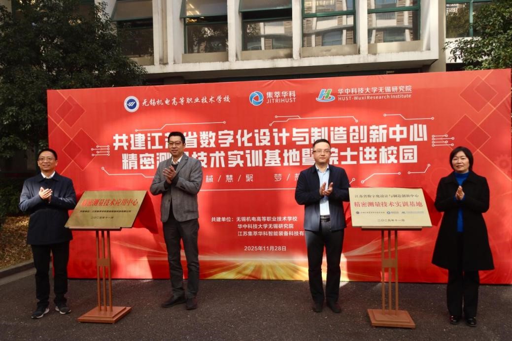 11月28日,江苏集萃华科智能装备科技有限公司与无锡机电高等职业技术学校共建的“江苏省数字化设计与制造创新中心精密测量技术实训基地”成功揭牌。中国科学院院士、创新中心主任丁汉到会致辞,无锡市教育局、工信局领导共同见证,无锡机电高职、华科大无锡研究院及集萃华科公司主要负责人参加此次活动。