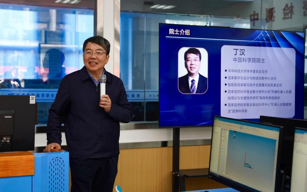 活动尾声,丁汉院士走进实训课堂与学子零距离交流。现场气氛热烈,同学们围绕前沿技术、科研攻关与职业成长提问,丁院士鼓励大家把握当前优良的学习条件与机遇,扎实掌握基础理论与工程技术,拥抱AI、机器人等前沿科技,形成独立思维逻辑与知识体系,在实践中发现问题、解决问题。