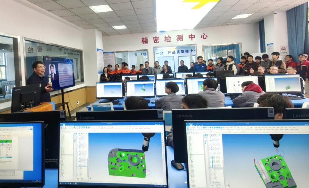 本次实训基地获得无锡市教育局专项资金支持,同时创新中心按照省工信厅、市工信局对省制造业中心的指导精神,提供多台设备与技术资源共享,可容纳40名学生同步开展虚拟仿真与设备操作实训。创新中心结合职校培养规律与无锡产业特点,开发“理实一体、虚实结合”的培训课程体系,融入航空发动机、汽车零部件等本地优势产业测量案例,并对授课教师开展专项培训与取证上岗。基地启用以来,已完成两个班级全时连贯培训及严格考评认证,预计每年将有近百名优秀学生实训取证,具备精密测量工程实操能力。